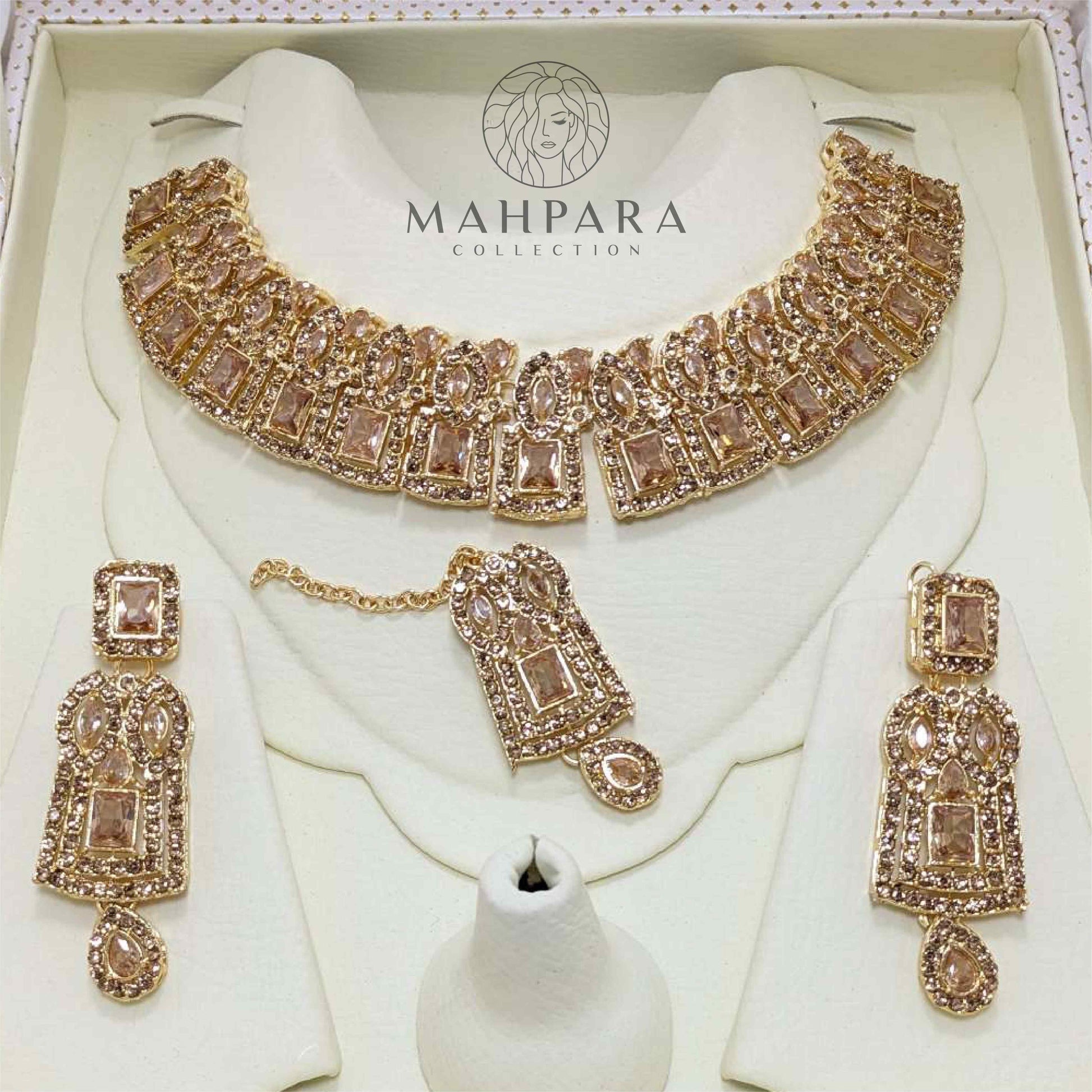 Premium Quality Golden Finish Bridal Jewelry Set For Girls / Women